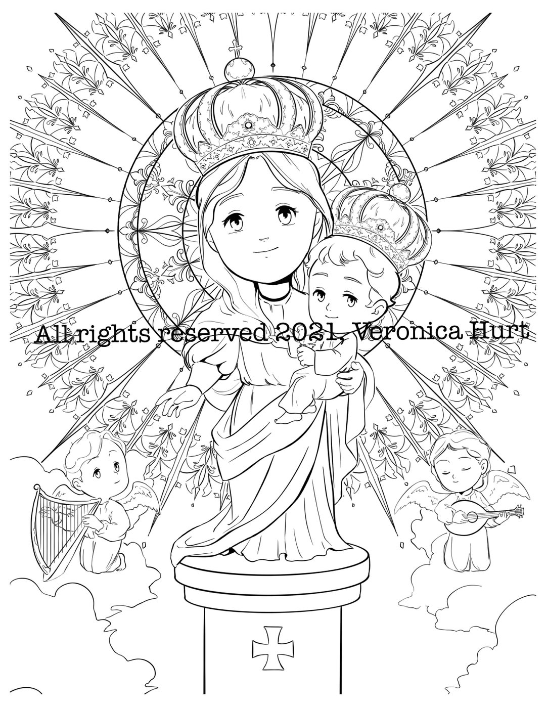 Our Lady Of The Pillar Coloring Page Nuestra Senora Del Etsy Australia